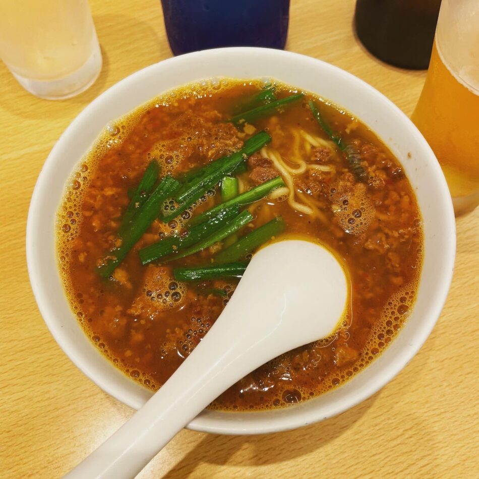 味仙の台湾ラーメン。小洒落た感じの大名古屋ビルヂングのレストラン街の中、お店のおじさんおばさんがいい感じに異彩を放っていて、やっぱ味仙最高です