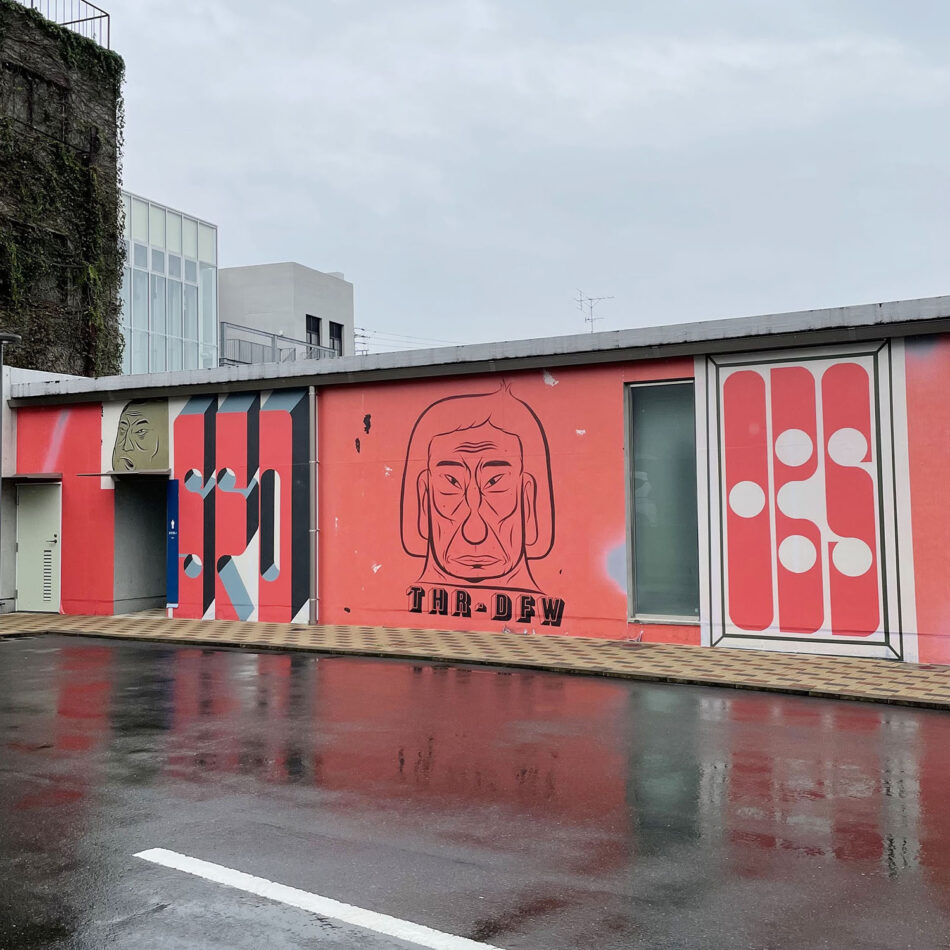 旧一宮市スケート場を出ると、先ほどの真清田神社の裏手にある大宮公園の小さなコンクリ製の小屋に再びバリー・マッギーの作品。市役所前の作品はラッピングシールだったが、こちらは恐らく直接小屋の壁に描かれている。本人が描いたのか。
