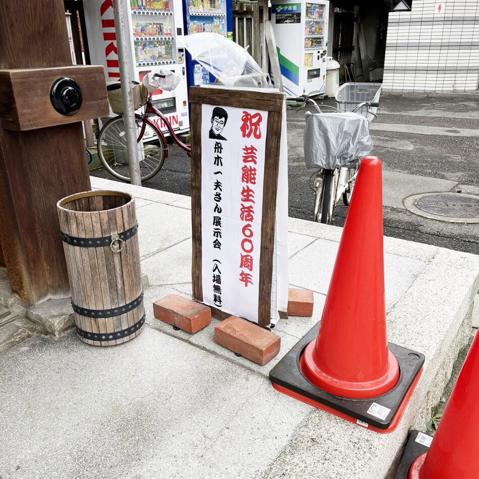 真清田神社の楼門脇の集会場では、舟木一夫の芸能生活60周年記念の展示会が開催されていた。舟木一夫は一宮出身らしく、地域のファンが集めたグッズや公演ポスター、雑誌表紙のコピーなどが展示されていた