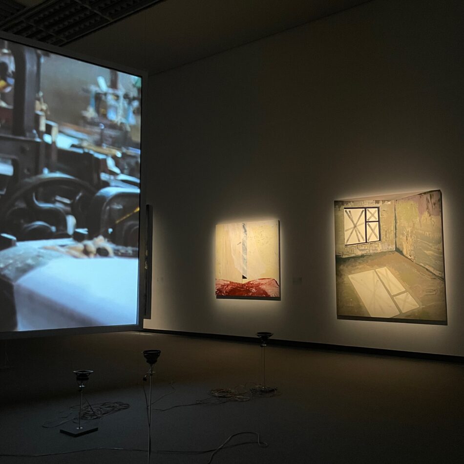モハンマド・サーミの絵画作品、イラク出身ということで政治的なテーマを絵画としているが、直接的に政治的なモチーフを描くのではなく、そこからひとつ抽象的な段階に形や色を移して作品化している(ピーター・ドイグにちょっと近いかも)。だからか、イラクの国内情勢や移民生活を主題としながらも、(新型コロナ禍やロシアのウクライナ侵攻以降)今やどこでも誰もがふと予感しそうな不安や不穏さをその作品から感じさせられた。